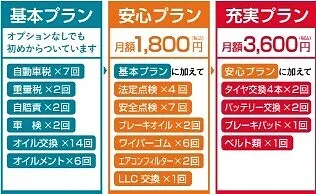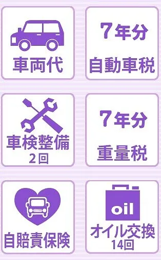 車検の時に必要な重量税・自賠責保険なども含まれていますから、急な出費も心配ありません。