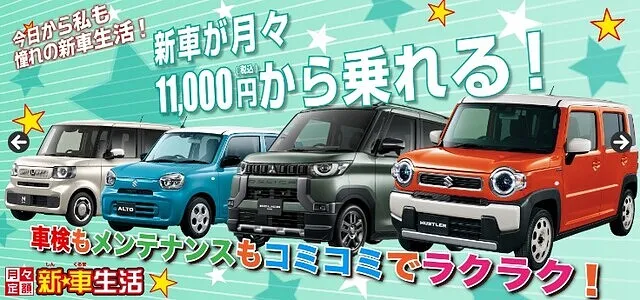 車体リース料や車検・メンテナンスなどが全てコミコミで、毎月定額一万円~で新車を楽しむことができます。